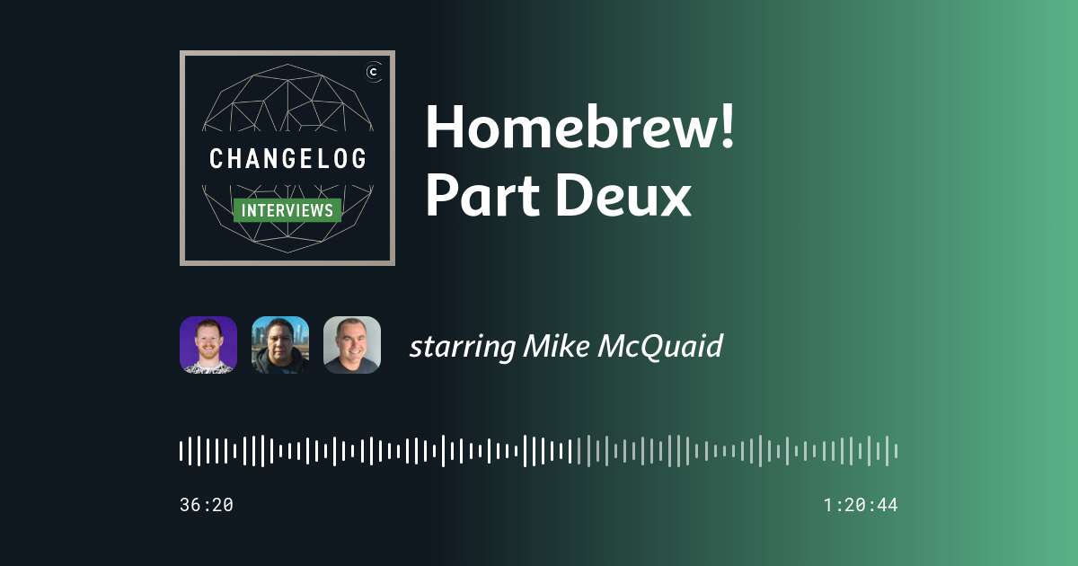 - 1:07 Mike McQuaid is back talking about Homebrew 2, supporting Linux and Windows 10,