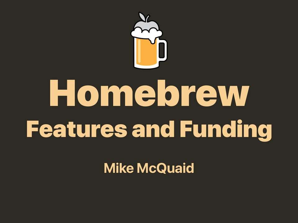 - 1:19 Right. So this talk, I'm going to talk about features and funding in homebrew.