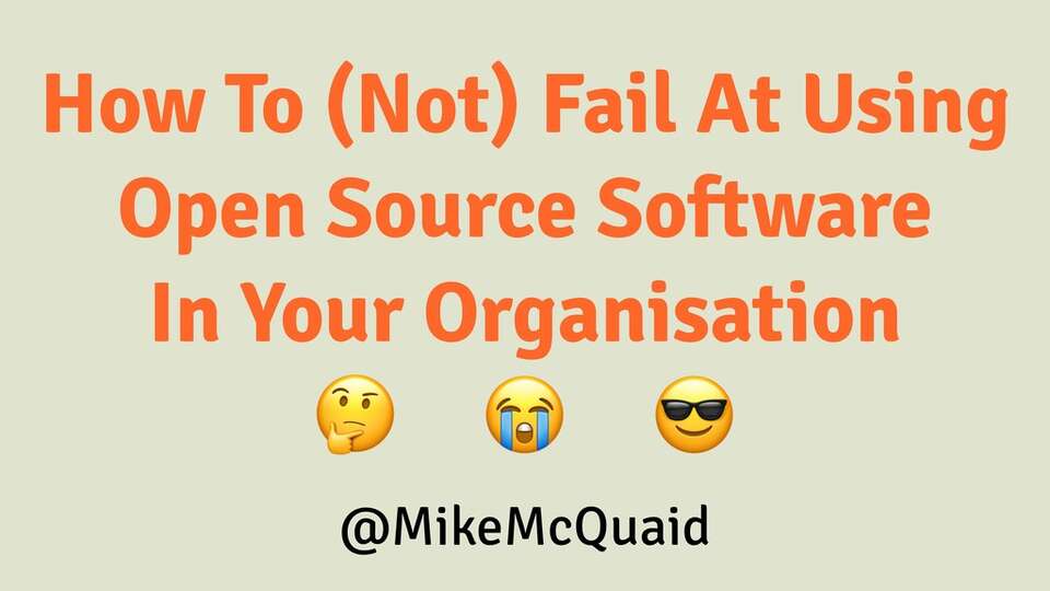 Learn how to use open source software in your organisation without succumbing to the most common of pitfalls.Presented at Mode 2 Meetup and Turing Fest in 2018 and TechMeetup Edinburgh in 2019.